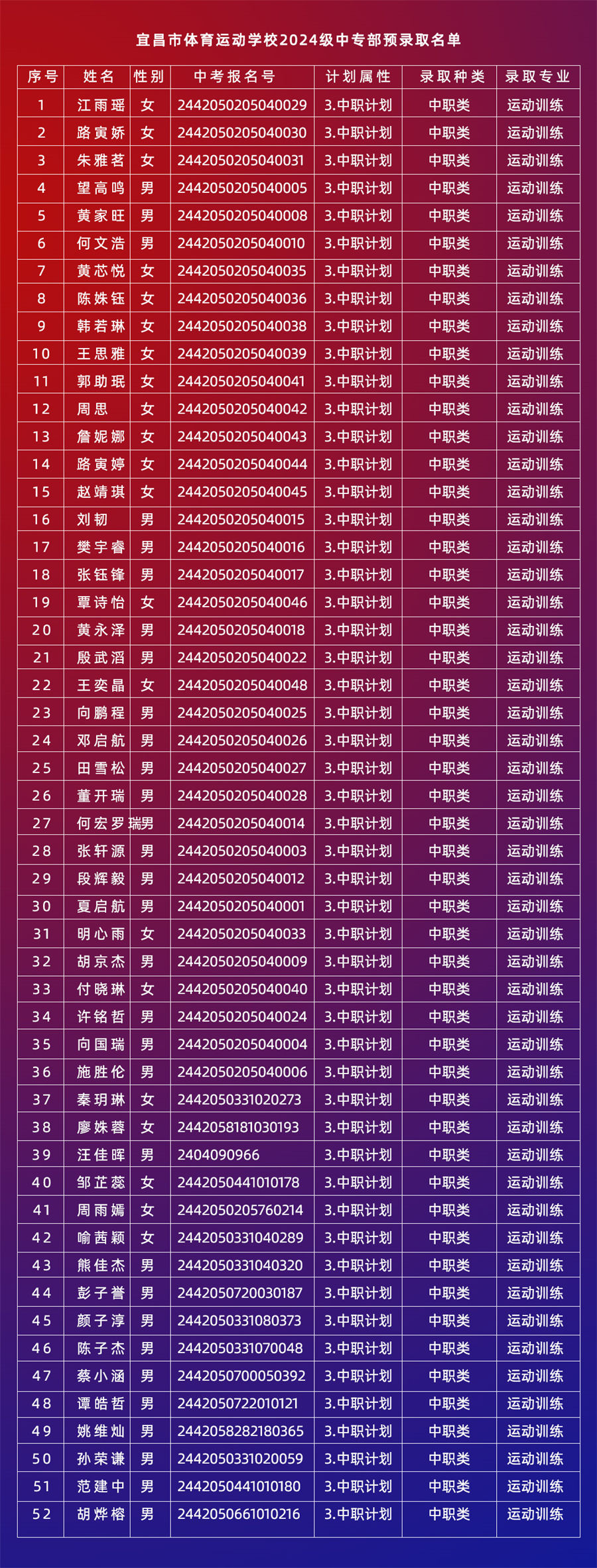 米兰体育app官网2024级中专部预录取名单