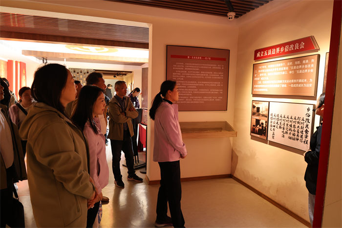 在纪念馆一楼,学校综合党支部认真开展了“红色教育基地追梦行”主题党日,并举行了仪式,全体党员在轮值书记的组织下开展了集中学习,校党总支书记王燕珍同志作党纪学习教育总结报告。纪念馆珍贵的历史图片和实物展品,让每位参与者都深切直观地感受到了那段峥嵘岁月的时代风貌。