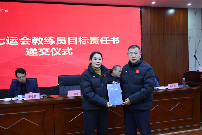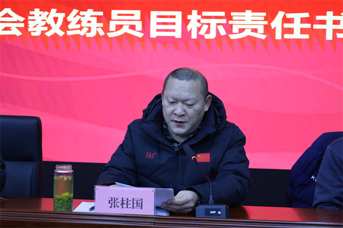 会议首先由副校长张柱国详细解读《省十七运会目标责任书》,强调其作为“任务书”与“军令状”的重要意义。责任书明确了各项目金牌目标、奖牌任务及赛风赛纪等全链条责任要求,旨在构建“层层负责、人人有责”的工作格局。