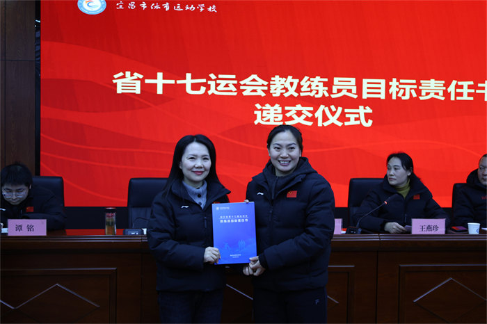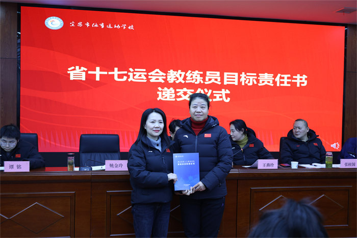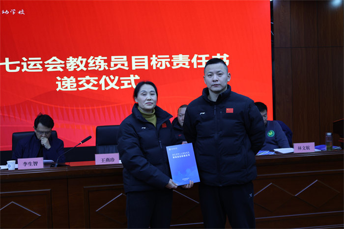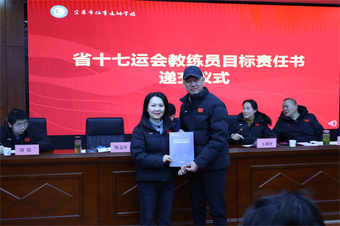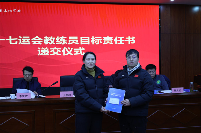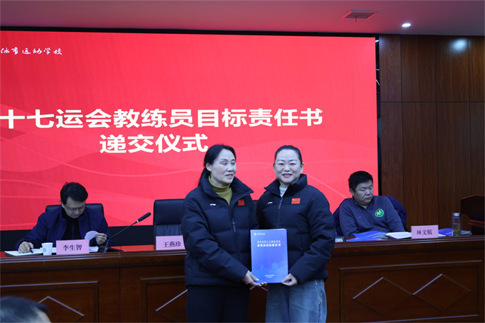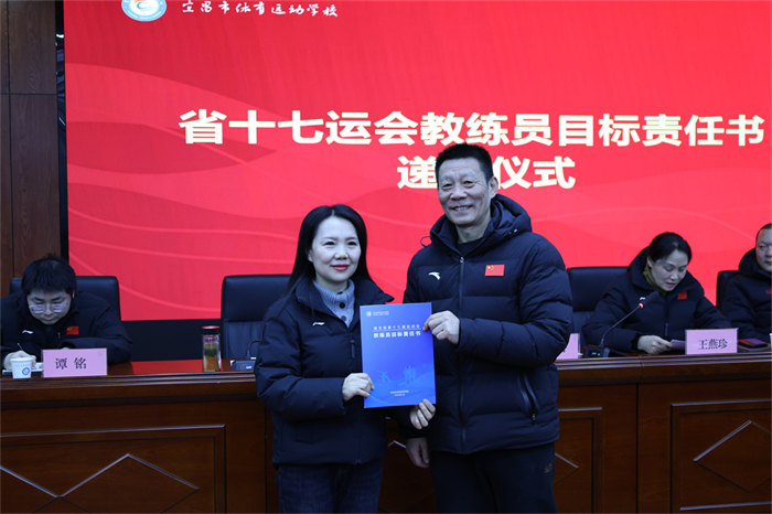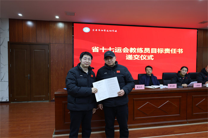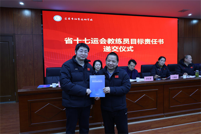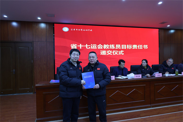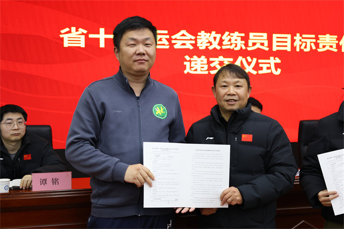 随后举行的责任书递交仪式将会议推向高潮。网球、游泳、篮球、举重等15个项目的28位教练员签订《省十七运会目标责任书》,明确了各项目的金牌目标、奖牌任务、人才培养指标,更细化了训练保障、赛风赛纪、反兴奋剂等全链条责任要求。