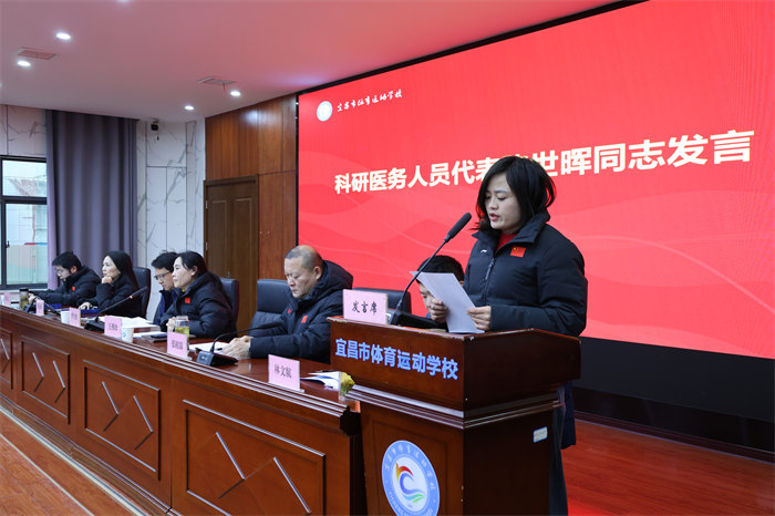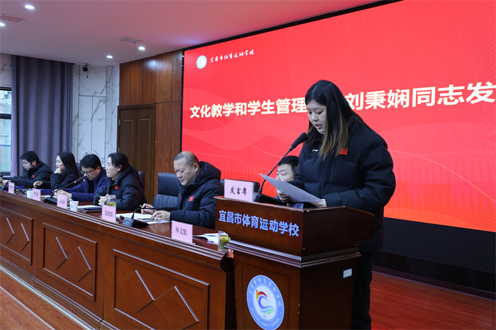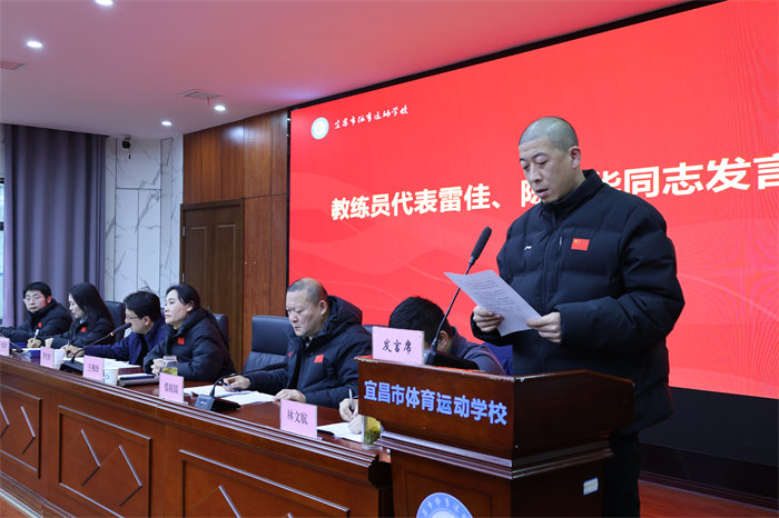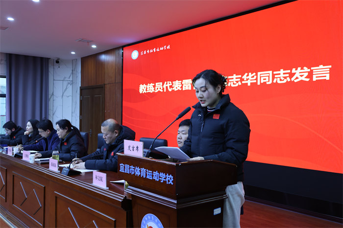 递交仪式结束后,五位教职工代表立足岗位庄严承诺: 教练员代表雷佳承诺,在冲刺阶段将坚持“精益求精”,制定个性化备战计划,强化体能、技术和心理素质;以“严慈相济”担当一线训练,做运动员信赖的“主心骨”;并以“同舟共济”精神凝聚团队合力,共享经验、共解难题。她号召全体教练员以决战决胜的信心,为加快体育强市建设、谱写宜昌新篇章而团结奋斗。
