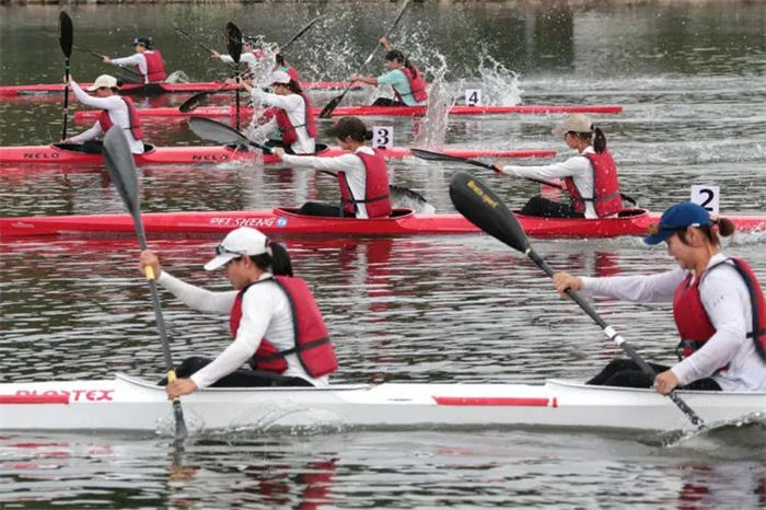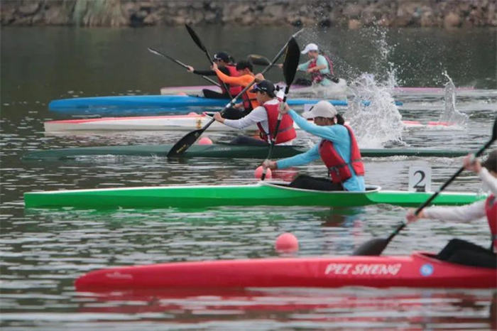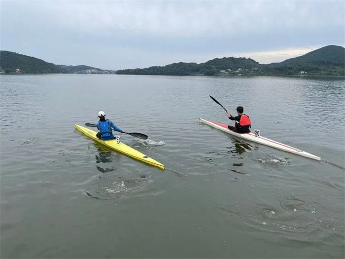 在波光粼粼的湖面上,参赛运动员们手握长桨与湖水“角力”,五颜六色的皮艇在湖面上穿梭飞驰,掀起阵阵波浪;选手们手握拉杆,蹬腿挺胸,动作整齐有序,在水中奋力滑行,上演了一场场水上“速度与激情”的大比拼。