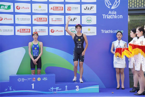 祝贺我校输送游泳运动员郝梦涵参加2023年泰州全国铁人三项U系列冠军第三