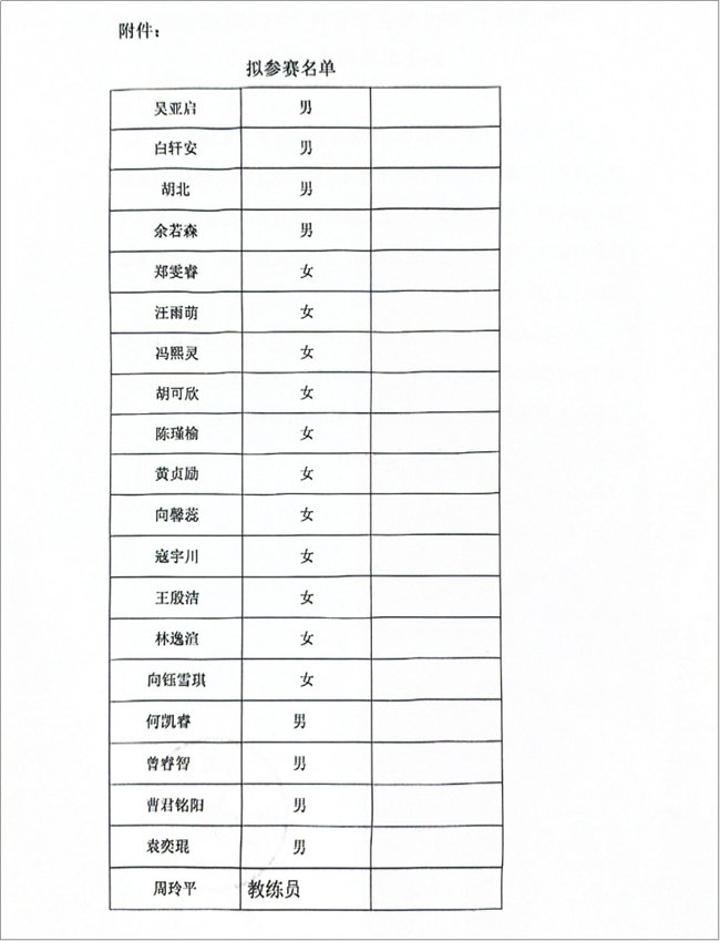 市体校关于2025年湖北省青少年跳水锦标赛参赛名单的公示