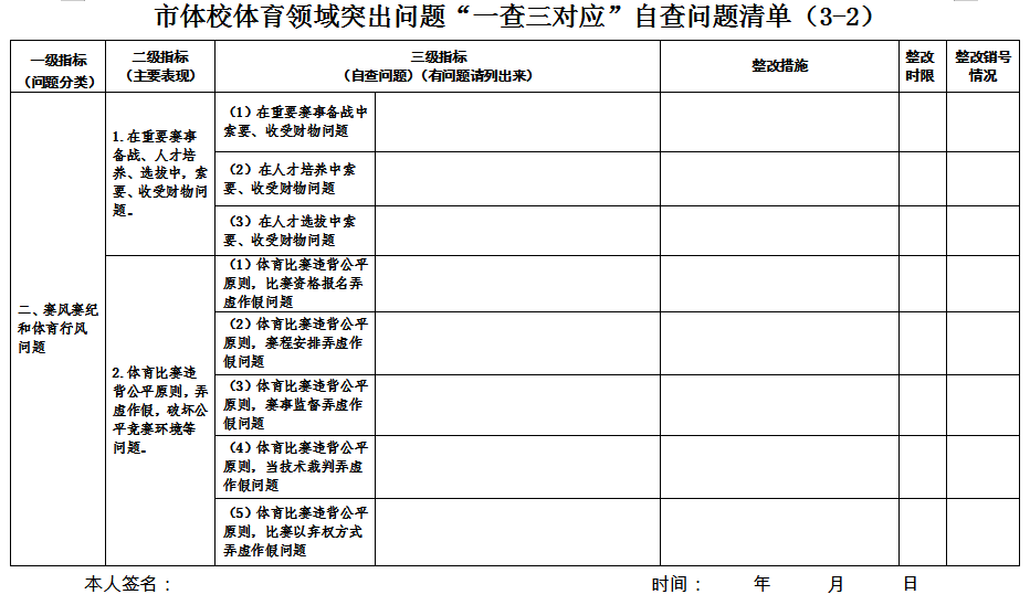 附件:市体校体育领域突出问题“一查三对应”自查问题清单