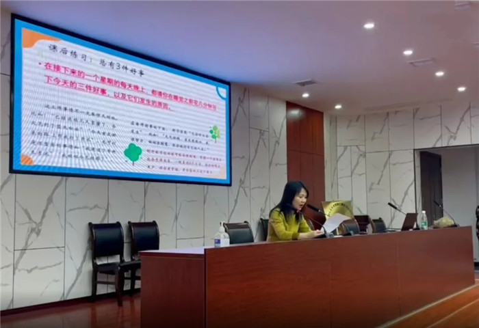 张老师在课程结束前为大家开出了一道疗愈良方:在接下来的一个星期的每天晚上,请学生在睡觉前花几分钟记下今天的三件好事情,以及它们发生的原因。