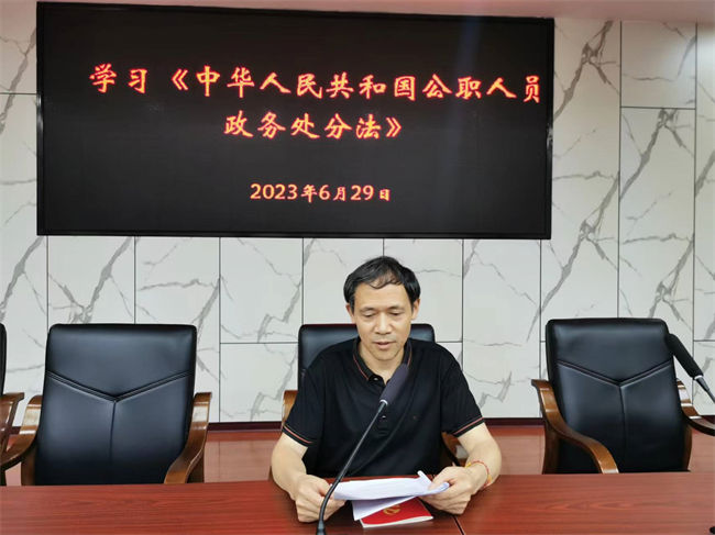 专职党务干部李圣平带领全体教职工学习《中华人民共和国公职人员政务处分法》