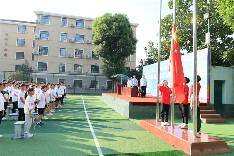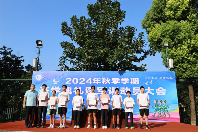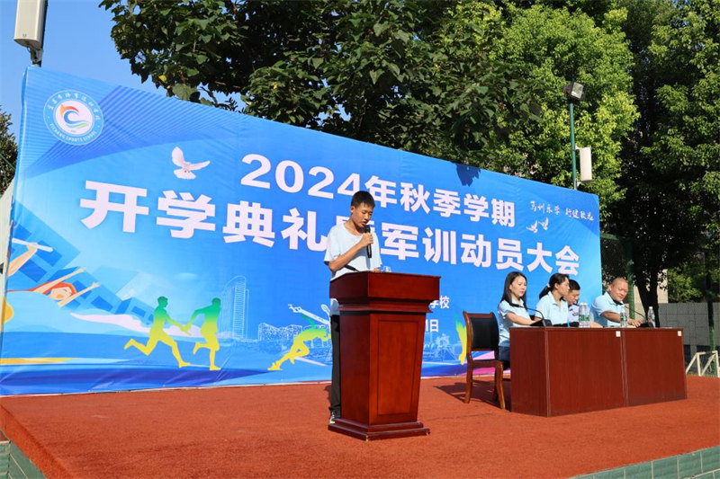 七年级拳击队的孔子林同学代表全体参训同学发言并宣誓:新学期将牢记”笃训乐学,行健致远”的校训,继续发扬奥运体育精神,以更加饱满的热情投入训练和学习,严格要求自己,认真学习,刻苦训练,全面发展。在即将开始的军训中,努力学习军人品质,通过军训培养团队精神,磨砺意志,树立正确的世界观、价值观,争做有理想、有道德、有文化、有纪律的接班人。