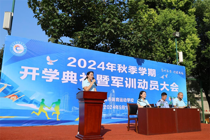 市体校校长王燕珍为开学典礼热情致辞,站在全新的起点,王校长希望同学们能以奥运健儿为榜样,力争上游,攻坚克难,勇者无惧,追求卓越。她送给大家三句话:胸怀阔宇、树立大志向;眼落精微、锤炼大本领;履践致远、涵养大格局。新的征程已经开启,王校长衷心地祝愿运动员们,以本次军训为契机,心怀美好的梦想,勇毅前行!
